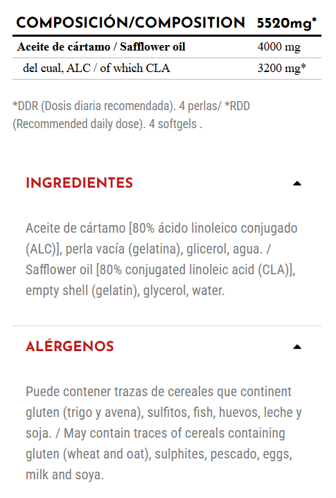 De esos 4000 mg, 3200 mg son CLA puro, lo que garantiza una alta dosis de este ingrediente activo.