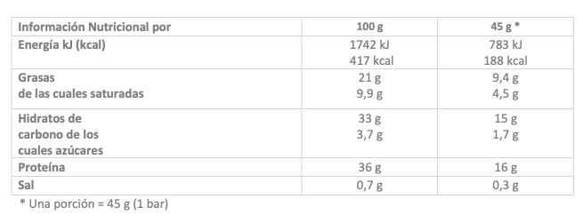 Aporta 15 g de proteínas por barrita