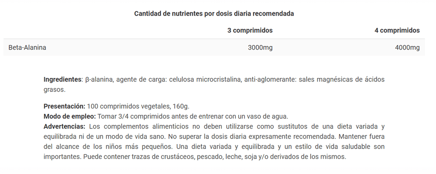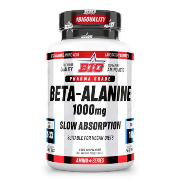 El nuevo BETA-ALANINE 1000mg de BIG®, reformulado y apto para dietas veganas, es un suplemento enfocado a mejorar el rendimiento y la resistencia muscular en atletas con mayor necesidad de cargar su musculatura con la finalidad de obtener mejores resultados. BETA-ALANINE 1000mg de BIG® contiene única y exclusivamente el aminoácido β-alanina en un grado de calidad y pureza superior a otros suplementos del mercado sin distinción Pharma-grade. La Beta-Alanina es un aminoácido presente de manera natural en nuestro organismo que, combinado con el amino-acido histidina forma el dipéptido carnosina. La carnosina es una sustancia presente en la musculatura que actúa principalmente como amortiguador para gestionar las variaciones de pH, retrasando la aparición de la acidosis láctica en las células musculares y, por lo tanto, aumentando su capacidad de rendimiento y resistencia especialmente en el entrenamiento con pesas. El nuevo BETA-ALANINE 1000mg de BIG® permite un mejor trabajo y una mayor cantidad de repeticiones de ejercicios antes de la aparición de la fatiga muscular. El efecto beneficioso de la suplementación con Beta-Alanina no se limita a la mejoría del rendimiento y la resistencia, sino que también presenta un efecto potencial sobre el crecimiento y la fuerza muscular.