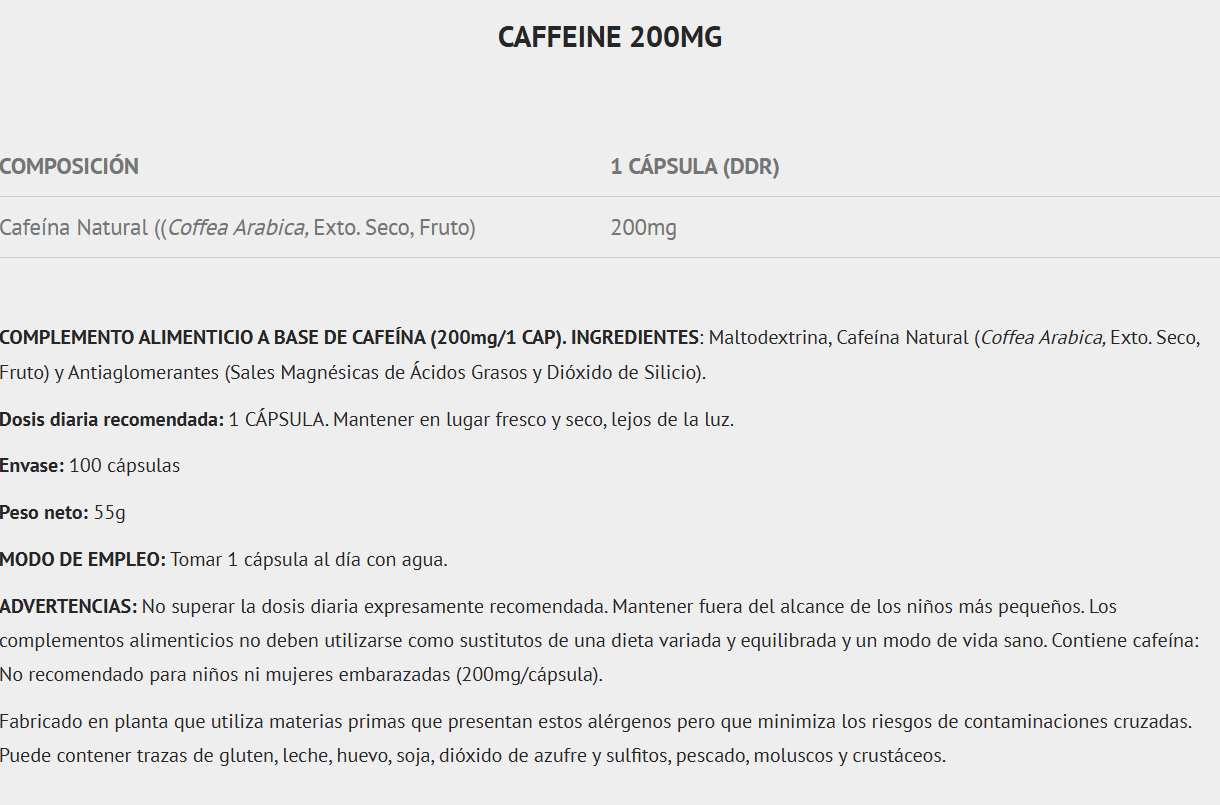 El suplemento nutricional de cafeína que presenta Scientiffic Nutrition está diseñado a base de cafeína natural de la más alta calidad presentada en cápsulas de fácil asimilación que proporcionan 200 mg de cafeína por cada una de ellas.