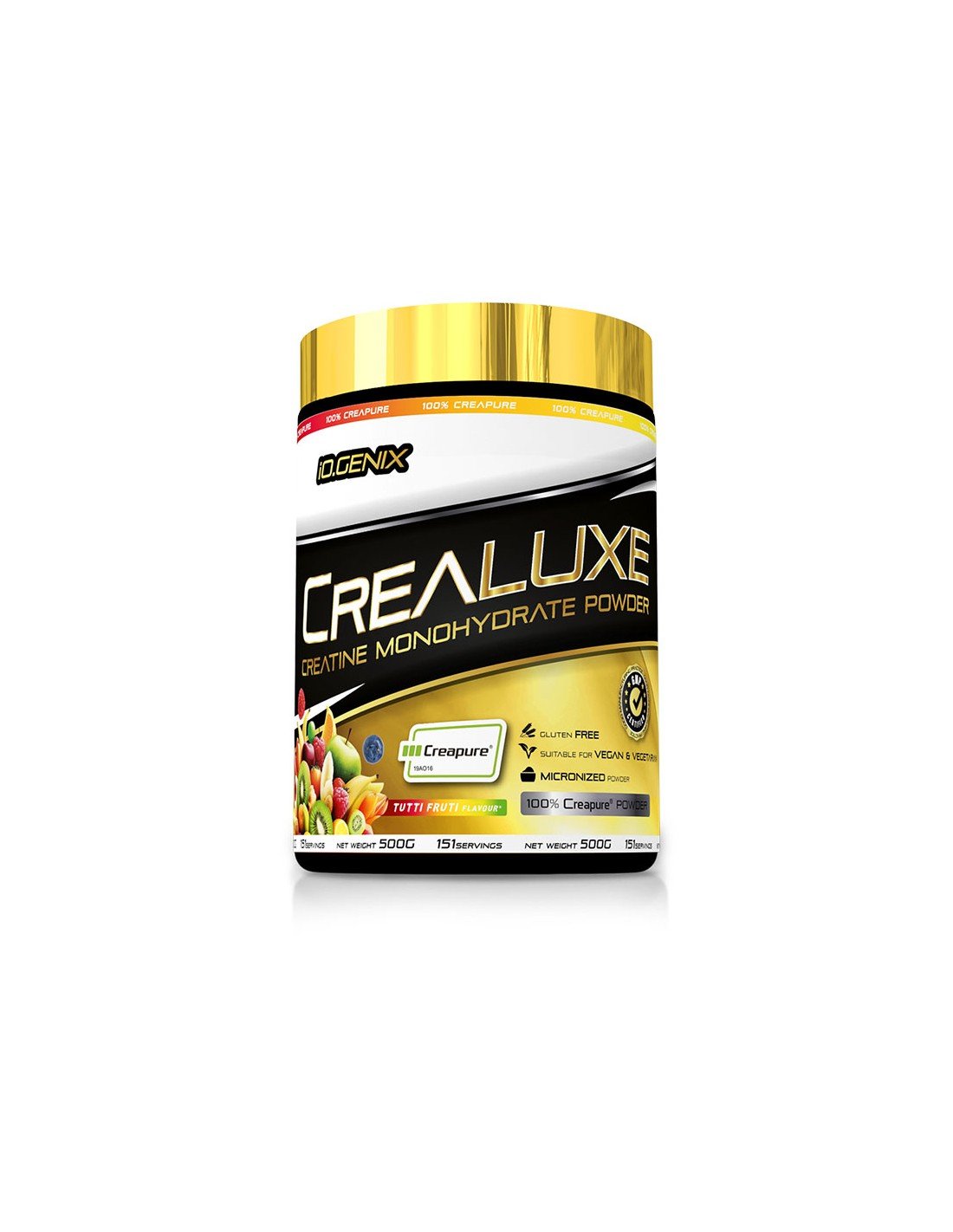 Creatina monohidrato 100% creapure ® en polvo, disponible tanto en sabor neutro como en distintos sabores. La Crealuxe de IoGenix potenciará la recuperación muscular y te aportará un extra de energía a tus entrenamientos. Aptas para dietas veganas y vegetarianas, y Gluten Free.