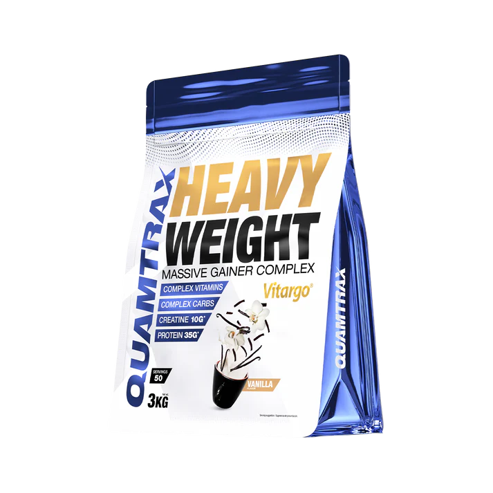 Heavy weight es un suplemento en polvo diseñado para aumentar masa muscular, mejorar el rendimiento físico y acelerar la recuperación. Su fórmula combina carbohidratos y proteínas de alta calidad junto con Vitargo®, proteína de suero de leche y creatina monohidrato, proporcionando energía constante y favoreciendo el desarrollo muscular de forma efectiva. Gracias a su mezcla de carbohidratos simples y complejos, como dextrosa, avena y Vitargo®,