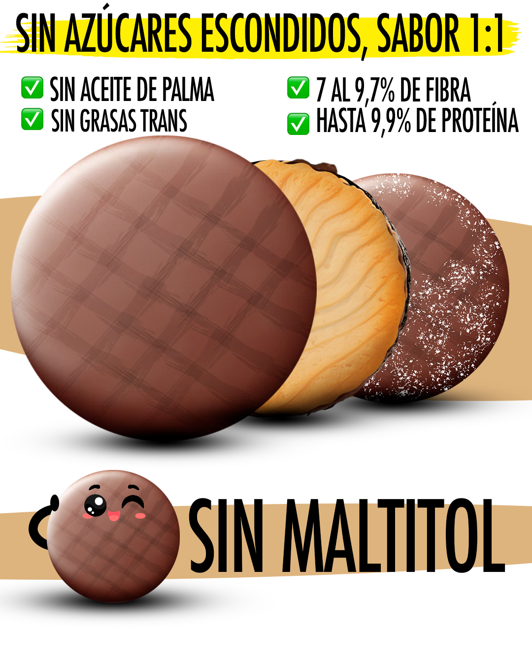 En el etiquetado olvídate de maltitoles o ingredientes indescriptibles tanto al principio como al final. Si bien es cierto que usamos eritritol e isomalt, su contenido es inferior al 2%.
