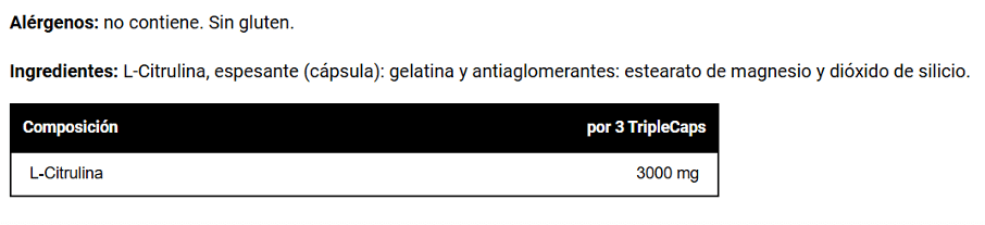 L-Citrulline 1000, de Vitobest®, es un producto más indicado para ayudar al organismo a retrasar la sensación de fatiga causada por la formación de ácido láctico en el músculo durante la actividad física. La L-Citrulina, es un α-aminoácido no proteico que participa como intermediario en la