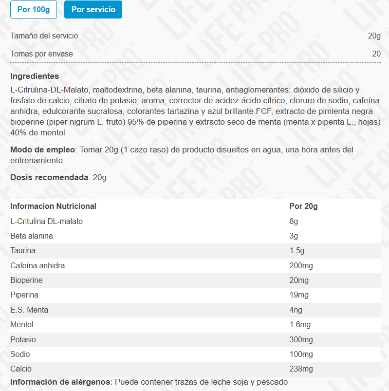 - Activación y concentración mental: La combinación de cafeína, taurina y Bioperine™ favorece un estado de alerta prolongado y mejora la capacidad de reacción.