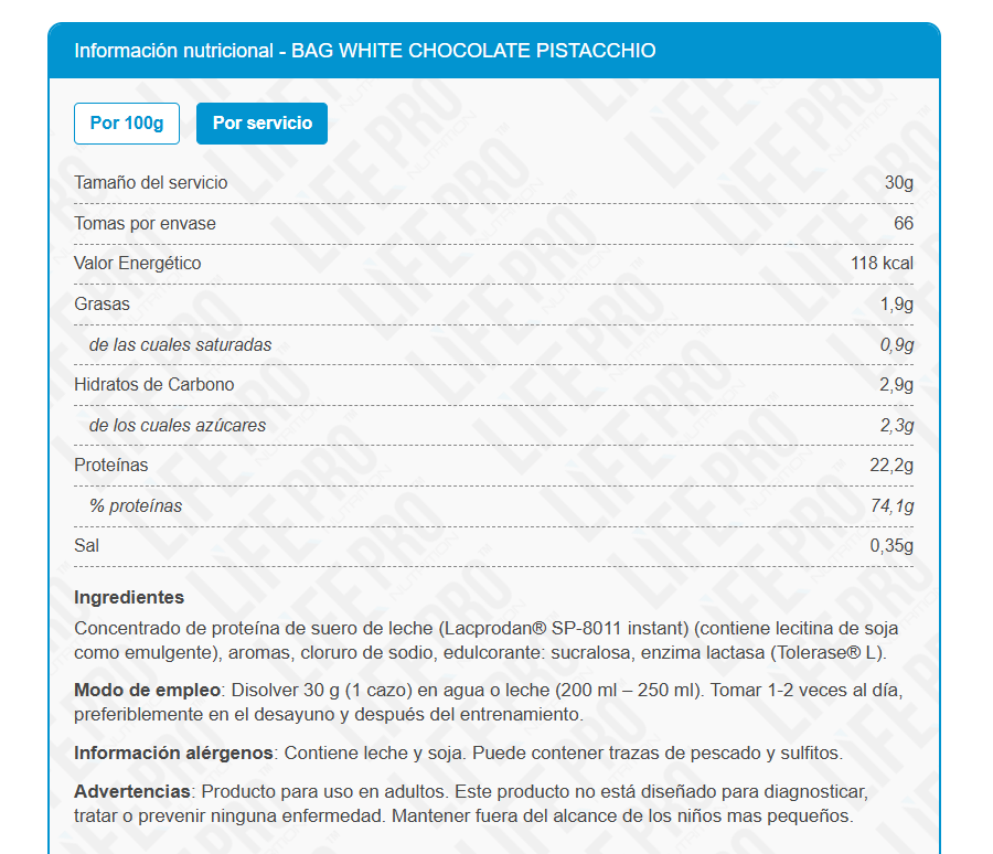 Concentración de proteína: Life Pro Whey cuenta con una concentración de proteína de un 78%. Es una pureza bastante elevada, y además no, las cantidades de otros macronutrientes, las grasas y los hidratos de carbono son especialmente bajos.