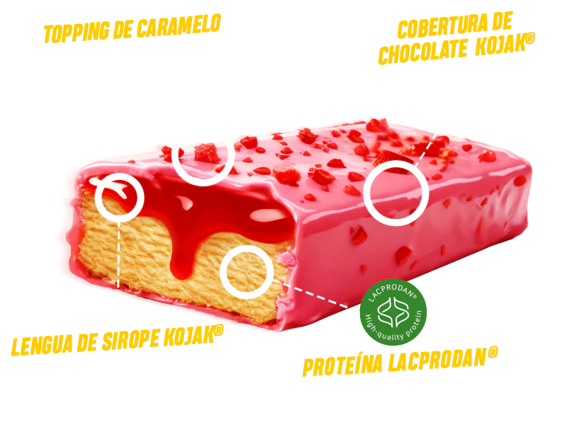 En esta ocasión, y en edición limitada, os presentamos nuestra nueva barrita proteica FIESTA® KOJAK®, tras continuar con nuestro exclusivo acuerdo de colaboración con el grupo FIESTA®, una marca mundialmente reconocida con la que tenemos el honor de trabajar mano a mano, recuperando los auténticos sabores de tu infancia para nuestra gama de proteínas, creatinas y ahora también snacks premium. ¿De verdad un snack con alto aporte proteico… y con el auténtico sabor a FIESTA® KOJAK®? Sí… ¡está pasando!