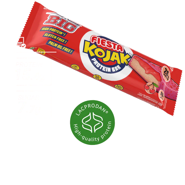 Descubre la nueva PROTEIN BAR FIESTA® KOJAK® fruto de una nueva colaboración de BIG® y FIESTA® y ¡disfruta ya de la barrita proteica mas sabrosa y divertida del mercado!, ahora disponible por tiempo limitado en sabor original caramelo Kojak® ¡imposible de describir si no la pruebas!