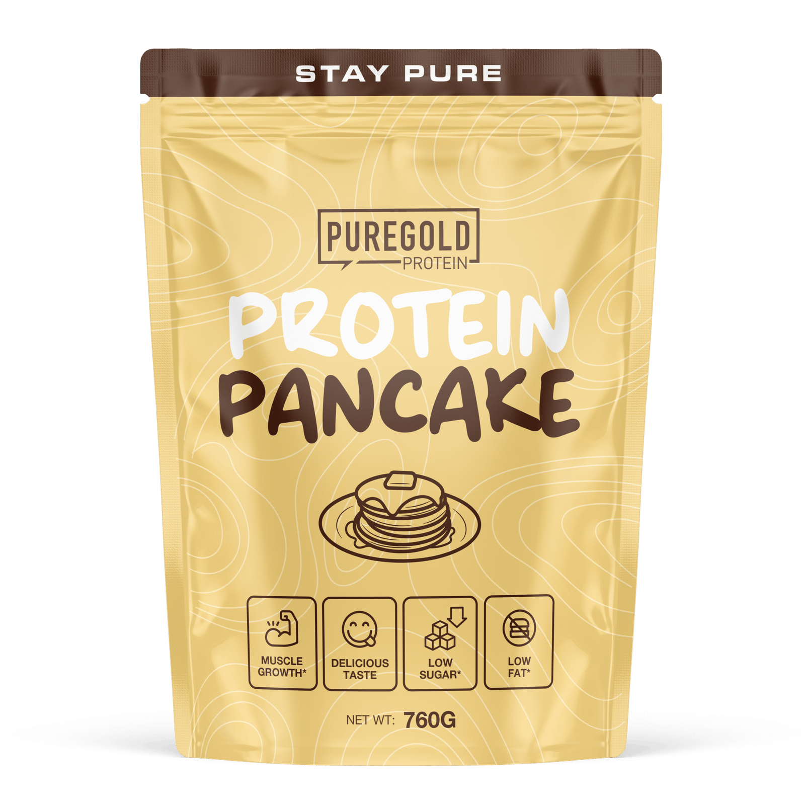 Polvo de proteína de pancake de Pure Gold con edulcorantes y polvo de proteína de suero de leche.