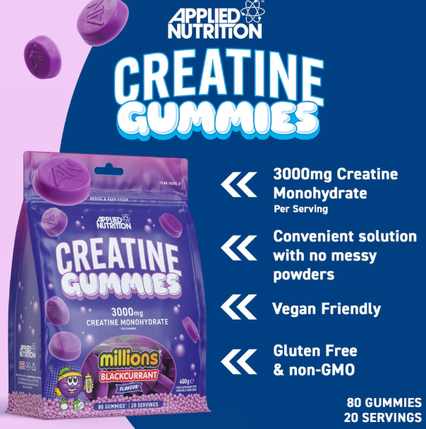 Las Gominolas de Creatina Monohidrato Applied Nutrition ofrecen una forma conveniente y deliciosa de mejorar el rendimiento en tus entrenamientos. Con 3000 mg de creatina monohidrato por porción, estas gominolas están diseñadas para mejorar la fuerza muscular, la potencia y la resistencia. Olvídate de los polvos desordenados y de las batidas complicadas: solo toma algunas gominolas y estarás listo para entrenar.